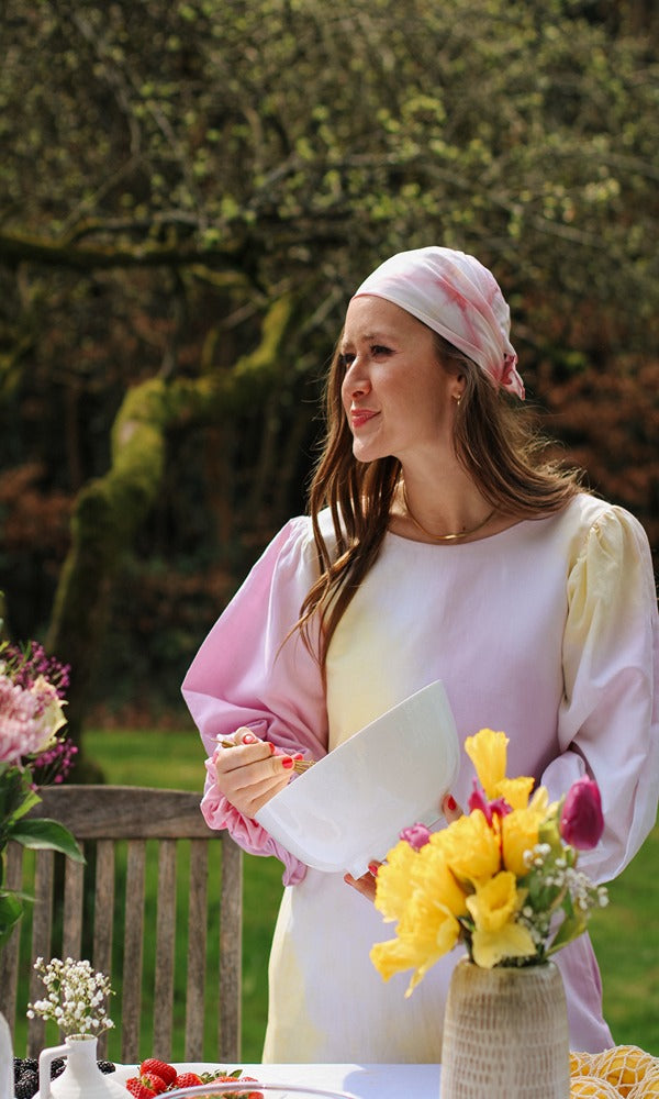 With her puffed sleeves, beautiful scallops design at the back ( for the sexiness 💕) and ruffles, she will elevate your silhouette, embrace elegance, comfort, all the sustainable way. Made from 100% natural Irish linen and naturally dyed using low-impact botanical dyes, she’s without a doubt the standout piece from this collection.
